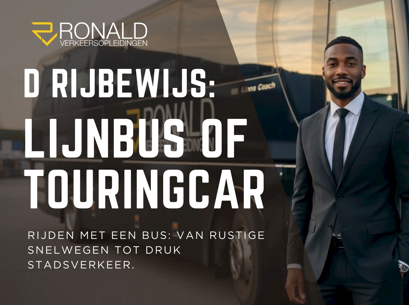 Bij Ronald Verkeersopleidingen heb je de keuze om het busrijbewijs te halen in zowel een lijnbus als een touringcar. Het is ook mogelijk om in beide voertuigen te rijden. Zo krijg je tijdens je opleiding direct praktijkervaring met beide typen voertuigen.